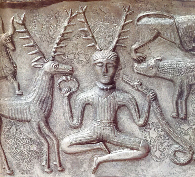 Котел из Гундеструпа. Пластина A: Кернунн, окруженный животными