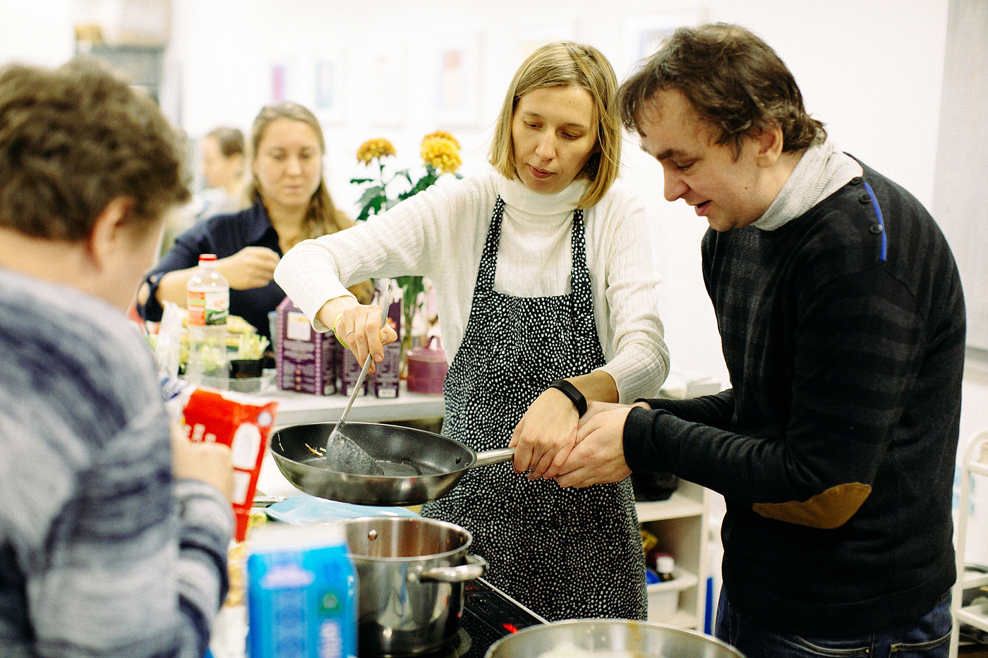 «Ему очень нравится [заниматься в мастерских], — говорит мать Ильи.-Самое главное в нашей ситуации, что он попал в коллектив, где его понимают. Люди все вокруг хорошие в большинстве своем, но они не обязаны его понимать. Он очень своеобразный. А туда он приходит — люди понимают, зачем он пришел и как с ним общаться, и общаются с ним на равных. Они проявляют интерес к нему. А он же все это чувствует. Для людей с ментальными особенностями очень важно, что есть коллектив, в который он просто может прийти».