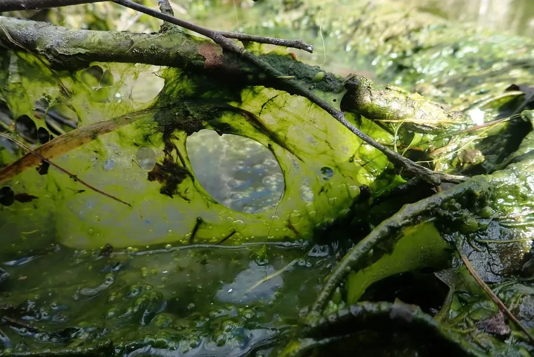 По берегам реки стоит мертвый лес. Березы — без листьев, кедры — без хвои. Умирает и берег: почвы выравниваются, появляются провалы, в которых выступает зеленая и бледно-серая вода. В мертвой реке заводится другая жизнь: сине-зеленые и нитчатые водоросли. Слизкие, обволакивающие, покрывающие собой поверхность воды. В чистых водоемах таких водорослей нет, а вот кислая вода — их стихия.