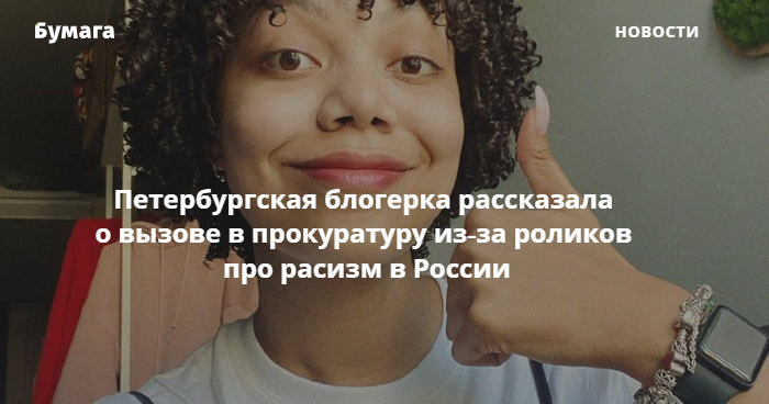 Петербургская блогерка рассказала о вызове в прокуратуру из‑за роликов про расизм в России