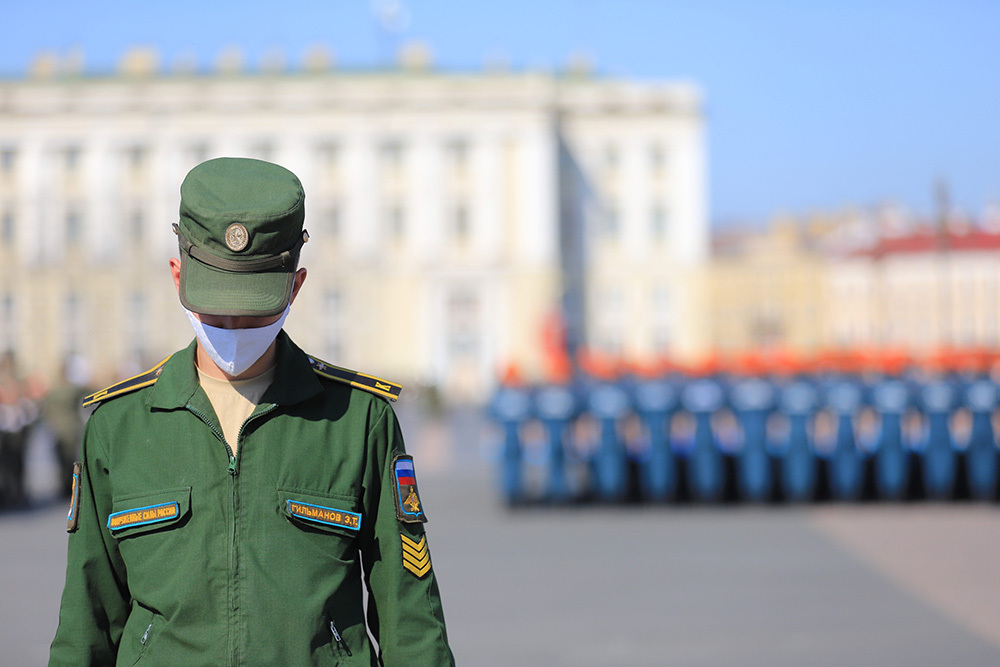 Как на Дворцовой площади репетируют парад Победы во время пандемии. Четыре фото