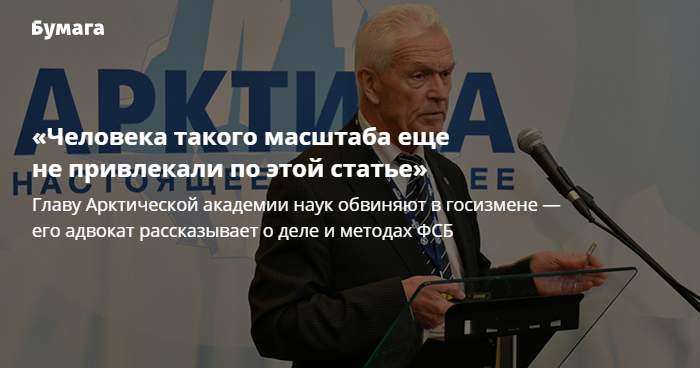 Президента Арктической академии наук Валерия Митько обвиняют в государственной измене. По версии ФСБ, во время поездки в Китай 78-летний ученый передал иностранным спецслужбам секретные документы — ему грозит до 20 лет тюрьмы. Доктора наук задержали еще в феврале, о его деле 15 июня рассказала «Медуза». В ФСБ ситуацию не комментировали.