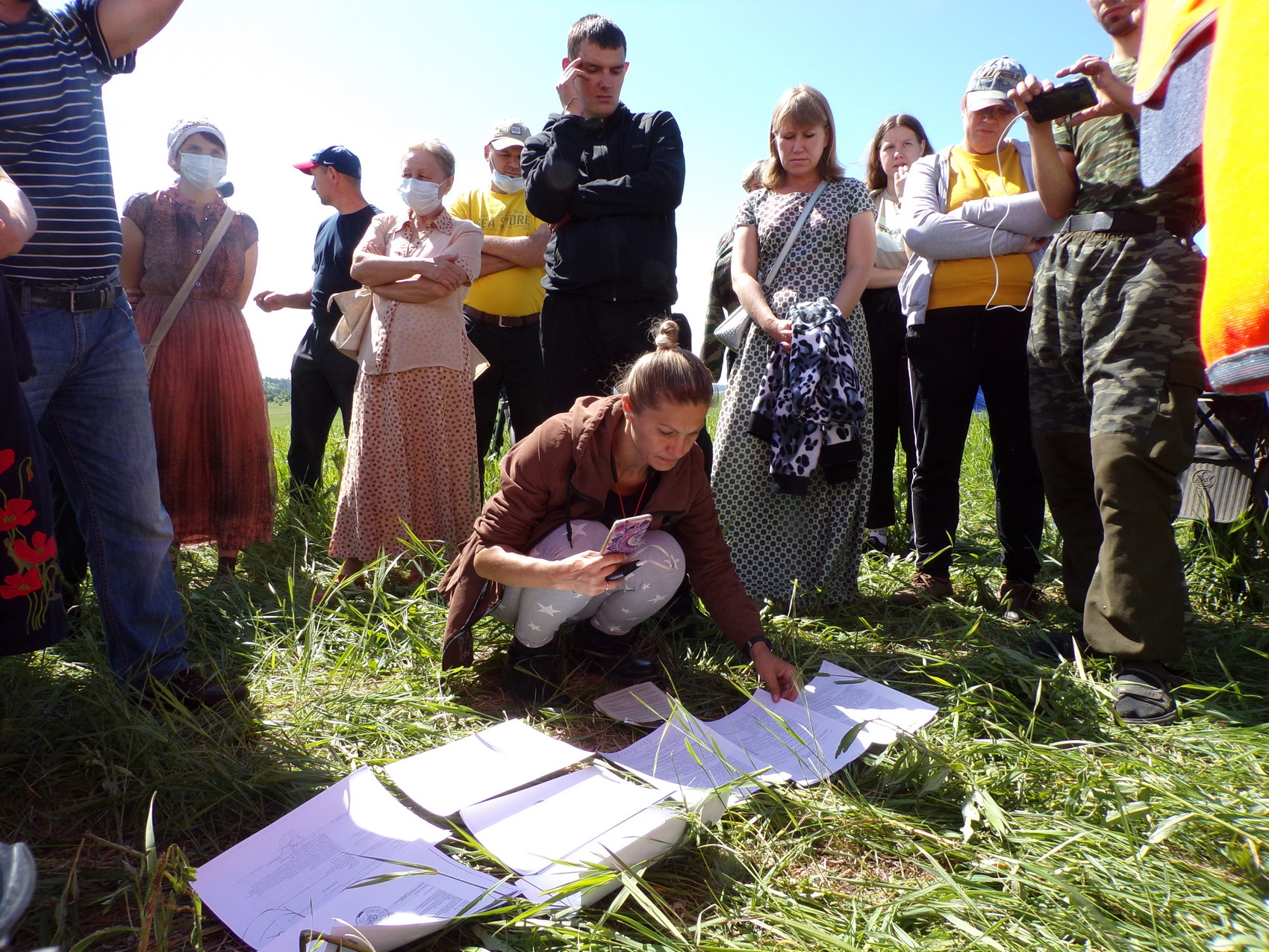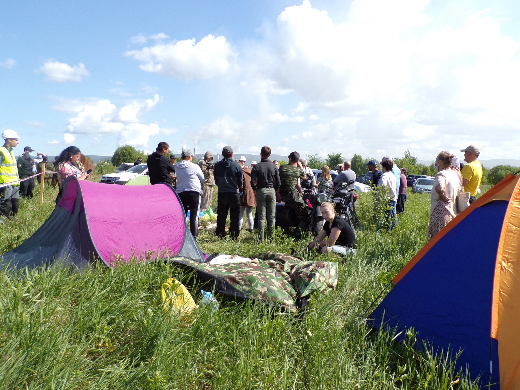 16 июня протестующих позвали на переговоры в администрацию Новокузнецкого района, но они не рискнули оставить лагерь. И в десятом часу утра чиновники и хозяева предприятия прибыли сами: рядом с палатками появились глава Новокузнецкого района Андрей Шарнин и Тимур Франк – гендиректор "Кузнецкого Южного". За их спинами – человек в синем костюме, которого активисты называют "спортивным чиновником", накануне советовавший им смириться, ибо "любая власть от Бога". На поляне в этот момент около ста человек – не только протестующие, но и люди в белых касках, которые обычно носят на таких объектах чиновники и начальство, а также полицейские и охранники. Несколько активистов остались блокировать бульдозер, остальные решили выслушать гостей, на визит которых здесь не особо рассчитывали.