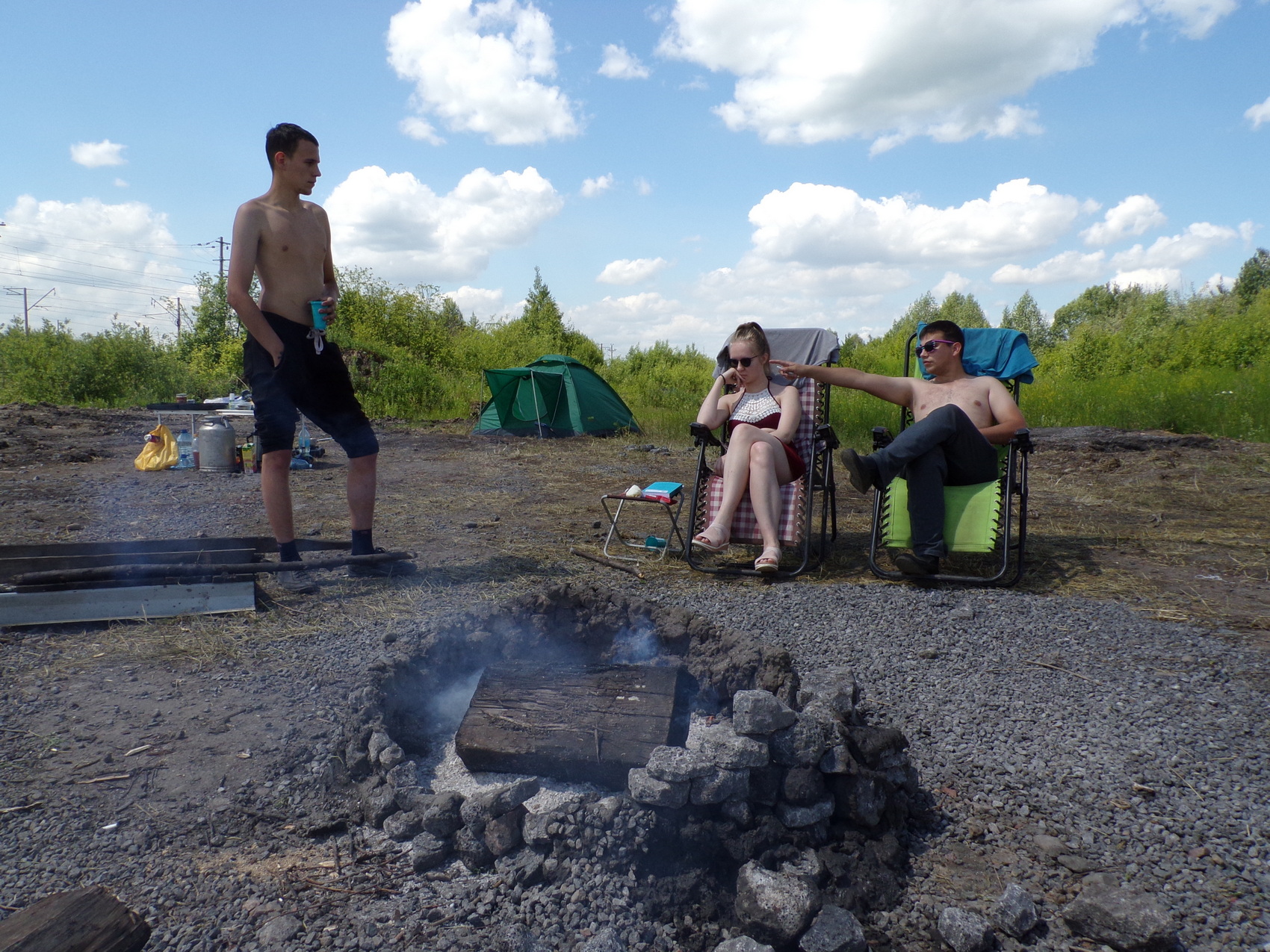 − У нас идёт война против разрезов и против погрузочных станций, − объясняет Роман Клёпов, дежурящий на этом посту с семи утра. За это время к дежурным уже успели подъехать сотрудники ДПС, которые спрашивали, что здесь за "пикник". Но, по словам Романа, они тоже против несанкционированной автодороги и относятся к этой добровольной вахте нейтрально.
