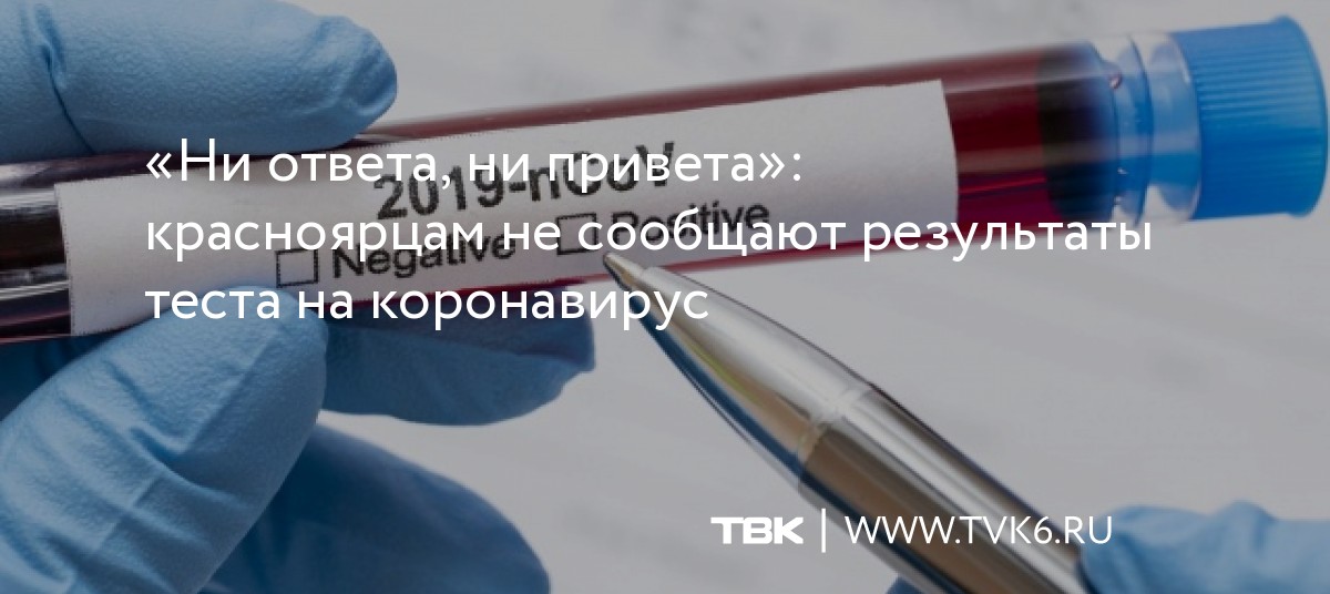 «8 июня меня посадили на карантин дома. Я вызвала врача, но ни кто не пришёл. На следующий день со скандалом в 20:00 пришли, взяли мазок. На этом больше ни ответа, ни привета. 15 июня у меня закончился больничный, но ни кто не звонил, не приходил. До сих пор я не знаю результата теста. Только 16 июня, через неделю после взятия мазка, удалось добиться результата теста, когда сама пришла в больницу», – рассказывает источник «ТВК Красноярск».