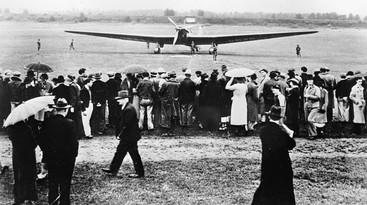 Когда на небольшом военном аэродроме внезапно приземлился прибывший с другой стороны Земли громадный красный самолёт с надписью «Сталинский маршрут» на борту, это должно было произвести заметное впечатление на нёсший там службу гарнизон.