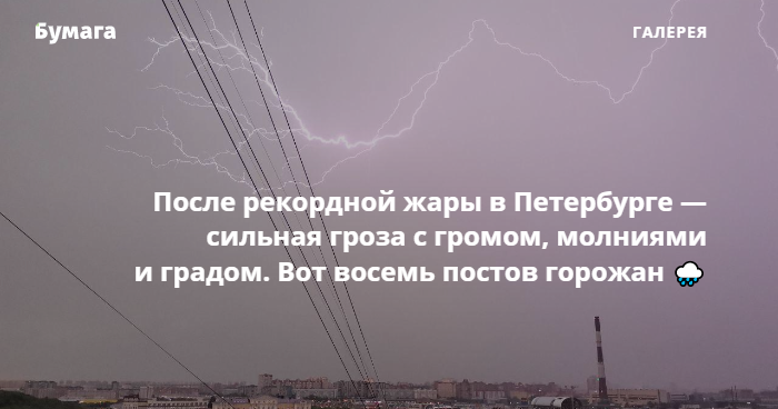 После рекордной 30-градусной жары в Петербурге вечером 18 июня началась сильная гроза. В некоторых районах города выпал град. Горожане сообщают, что часть улиц и набережных затопило. «Бумага» собрала фотографии и видео, которые петербуржцы опубликовали в соцсетях.
