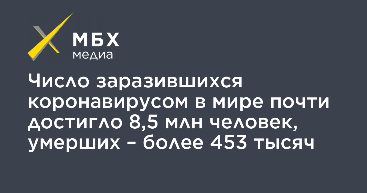 Число заразившихся коронавирусом в мире почти достигло 8,5 млн человек, умерших – более 453 тысяч