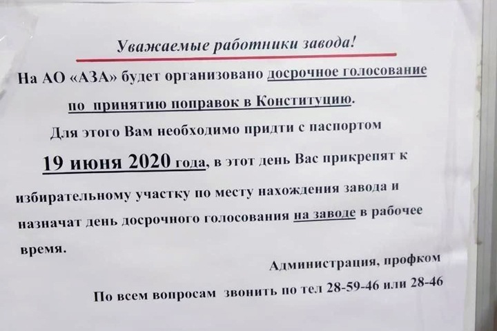 Жители регионов Сибири сообщают о массовых нарушениях закона при организации голосования по поправкам в Конституцию. Больше всего заявлений поступило из Алтайского края, где бюджетников и сотрудников частных компаний, по их словам, заставляют организовать явку.