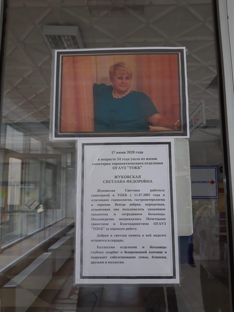 Санитарка отделения терапии Областной клинической больницы, 54-летняя Светлана Жуковская, 17 июня умерла в медсанчасти № 2. Ее госпитализировали с коронавирусом. В сводки регионального оперштаба данные о смерти Светланы не вошли.