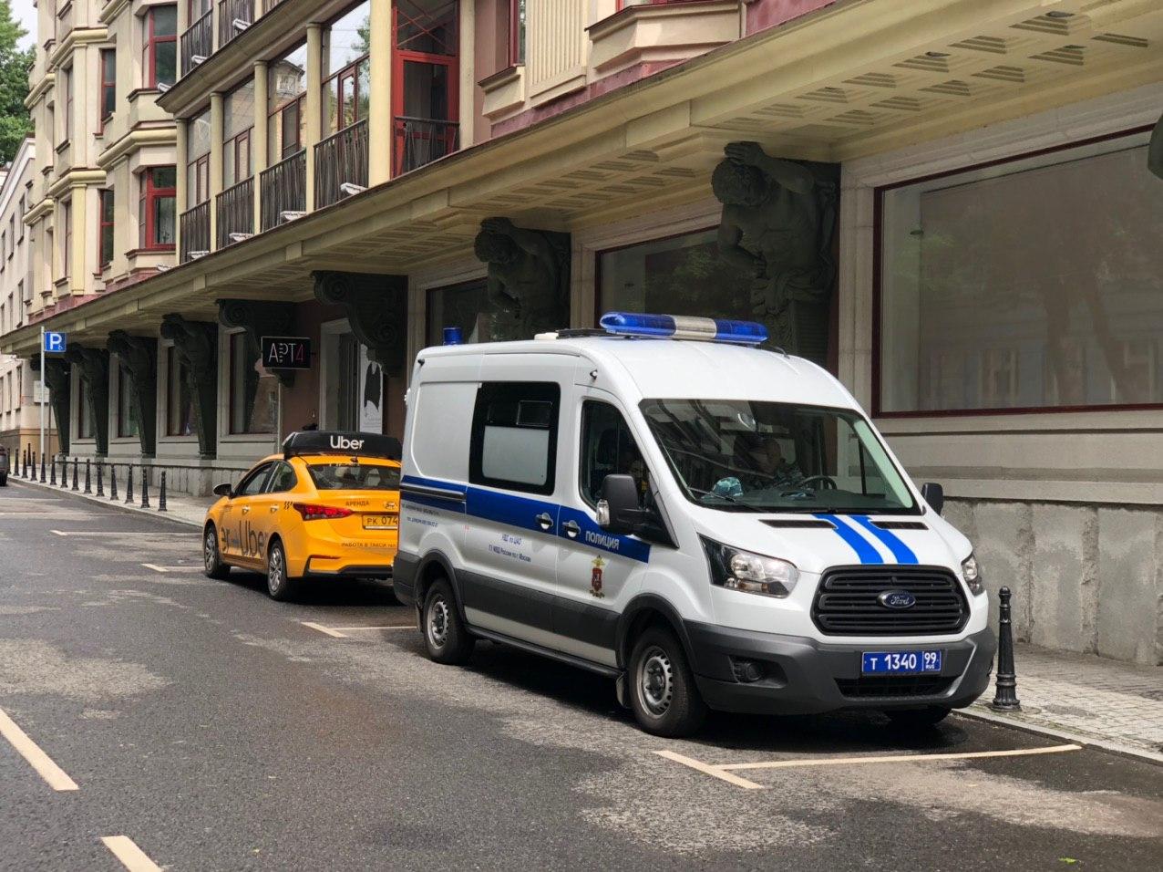У галереи корреспондент «Медиазоны» обнаружил полицейский автомобиль.