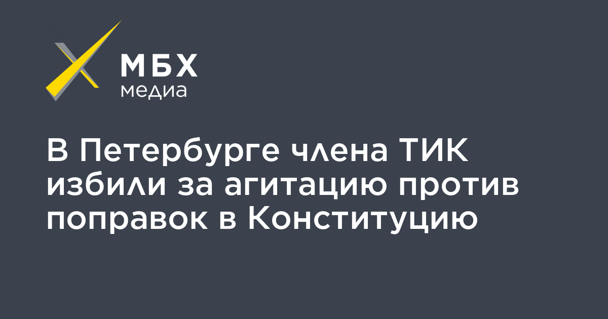 В Санкт-Петербурге члена территориальной избирательной комиссии и участника движения «Чайный Клуб» Евгения Смирнова избили за агитацию против поправок в Конституцию. Об этом «Северо-Запад. МБХ медиа» рассказал сам потерпевший.