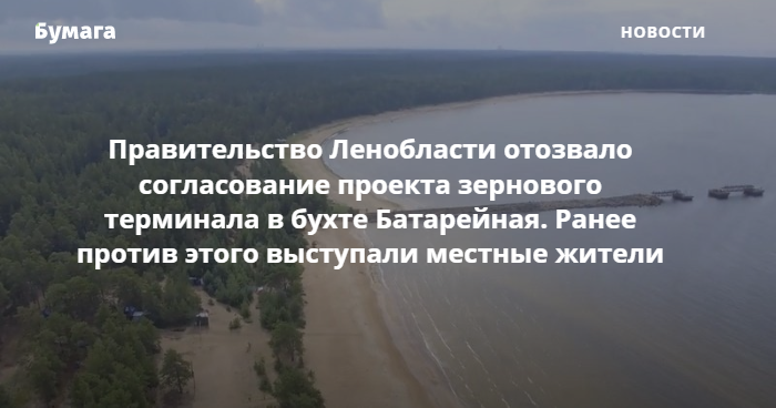 Ранее жители Ленобласти создали петицию против строительства зернового терминала в бухте Батарейная. Ее авторы отмечали, что при создании инфраструктуры будет разрушена самая высокая дюна в области, вырублен вековой сосновый лес и нанесен ущерб Горовалдайскому озеру.