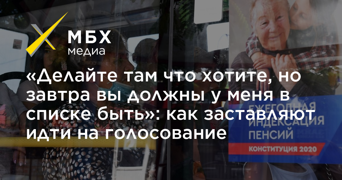 Принудить к голосованию могут разным способами. Например, один из читателей сообщил «МБХ медиа», что начальство настаивает на том, чтобы он выбрал избирательный участок по месту работы. Сопредседатель общественного движения «Голос» Юрий Гурман рассказал «МБХ медиа», что таким образом руководство хочет проконтролировать сам процесс и проследить, чтобы все сотрудники проголосовали.