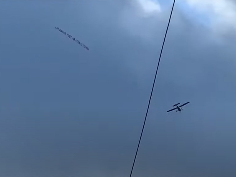 Самолет сделал несколько кругов над ареной, прежде чем улететь.