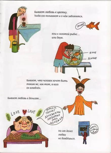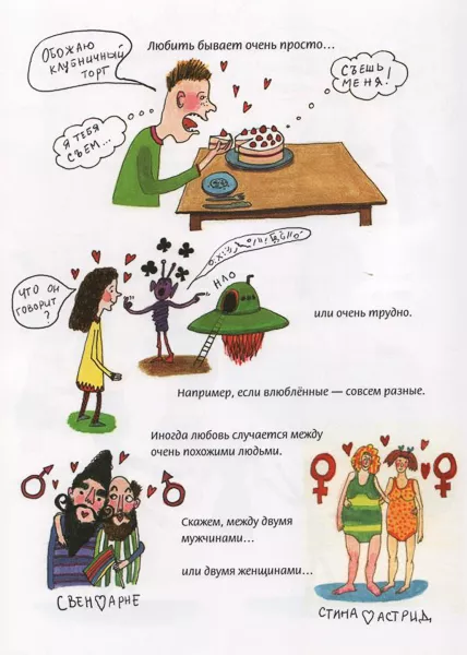 Иллюстрации Эвы ЭриксонКниги одного из самых любимых в России шведских детских авторов, Ульфа Старка, часто иллюстрированы Анной Хёглунд, поэтому стиль художницы наверняка знаком многим: изображение довольно плотное, порой по-иконописному подробное, черты скорее символические, чем психологические. Ее иллюстрации к философским рассказам для детей Ульфа Старка «Георгий и дракон» и «Маленький Асмодей» тонко перекликаются метафизикой повествований: густые, предзакатные оттенки и четкие восходящие линии, создающие связь между низом и верхом. Кроме иллюстраций, Анна Хёглунд создала много книг для детей и подростков, в которых она автор и текста, и картинок. В пока еще не переведенной на русский фантазийной книжке-путешествии «Resor jag (aldrig) gjort» — «Места, где я (ни разу не) бывала» объемность повествованию придает именно органичное переплетение текста и изображения. Интересно, что в шведской педагогике регулярно используется понятие «текст в широком понимании». Текст для ребенка — это также последовательность изображений, которая создает повествование. Это может быть и сочетание вербального и невербального изложения, то есть картинок и печатного текста или видеоряда и речи.