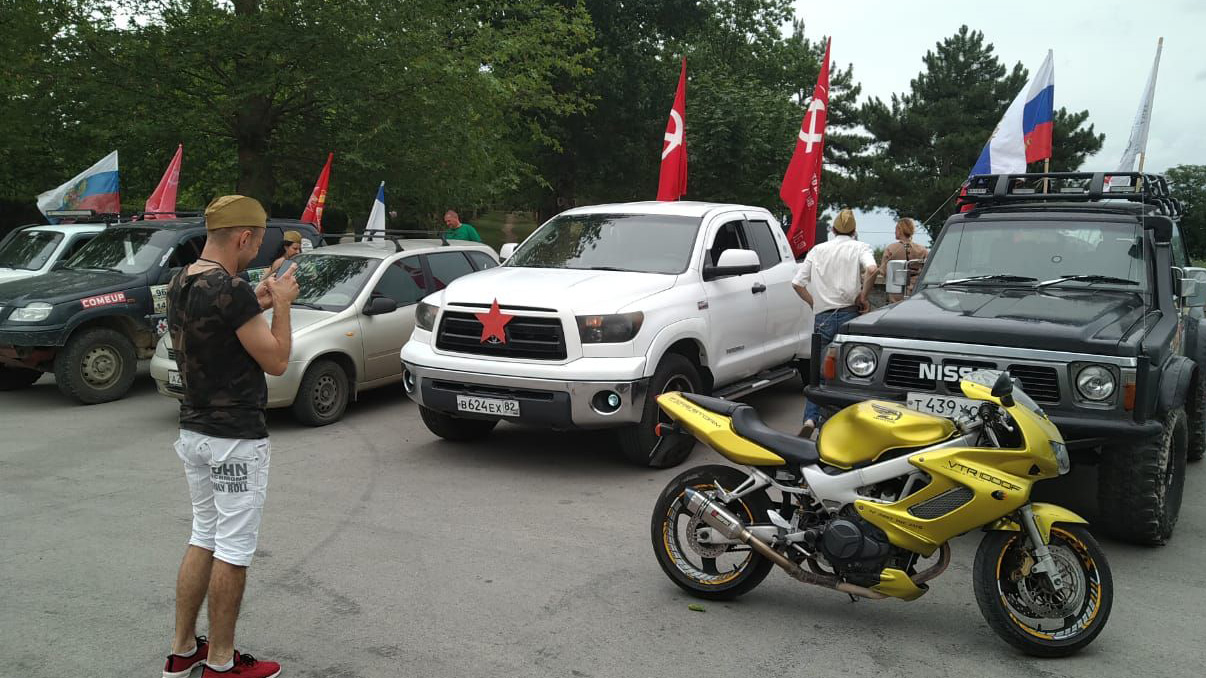 По Симферополю ездят автоколонны с военными песнями и советскими флагами (+фото, видео)