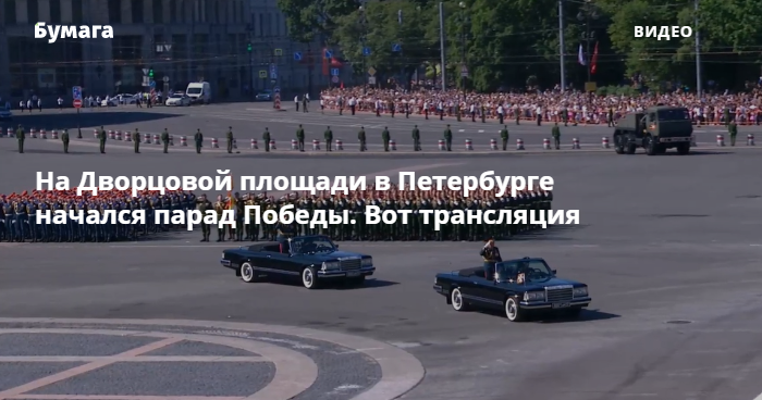 Утром 24 июня на Дворцовой площади в Петербурге начался парад в честь 75-й годовщины победы в Великой Отечественной войне. Трансляцию ведет телеканал «Санкт-Петербург».