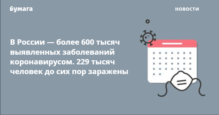 Число заболевших COVID-19 в России превысило 600 тысяч