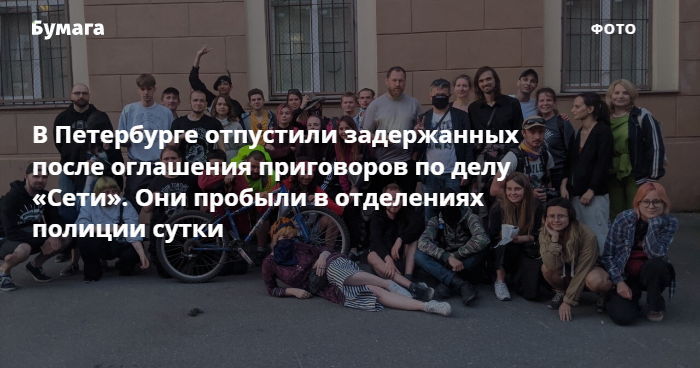 Из петербургских отделений полиции спустя сутки отпустили 30 человек, задержанных у здания суда, где оглашали приговоры петербургским фигурантам дела «Сети». Об этом в ночь на 24 июня сообщили активисты из Rupression.