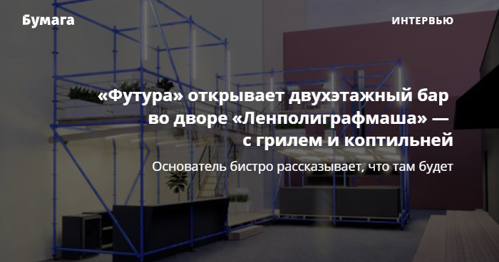 «Футура» открывает двухэтажный бар во дворе «Ленполиграфмаша» — с грилем и коптильней