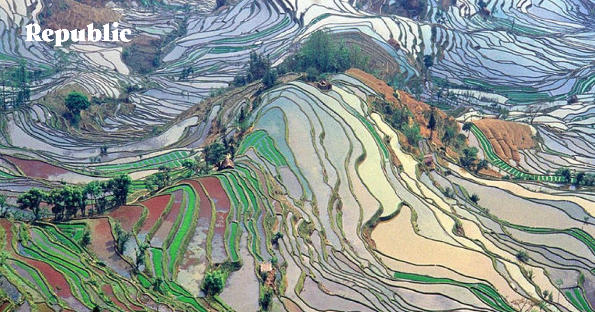 Древние террасные поля для возделывания риса. Провинция Юньнань, Китай.