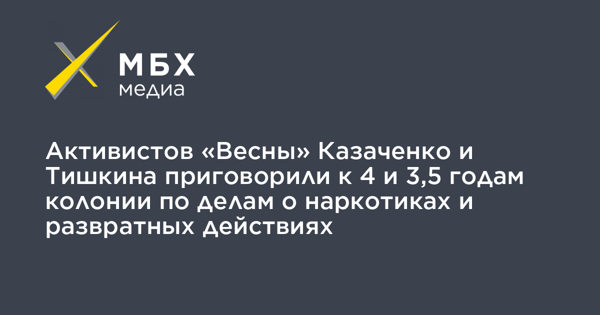 Активистов «Весны» Казаченко и Тишкина приговорили к 4 и 3,5 годам колонии по делам о наркотиках и развратных действиях