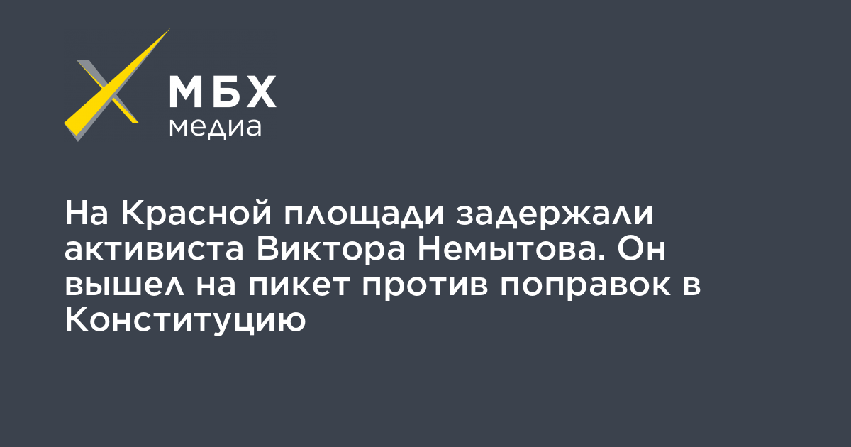 В Москве на Красной площади задержали активиста Виктора Немытова, который вышел на одиночный пикет против поправок в Конституцию. Об этом сообщает корреспондент «МБХ медиа».