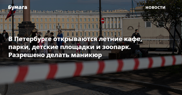 С воскресенья, 28 июня, в городе разрешено посещение парков, садов и скверов, а также детских и спортивных площадок. С понедельника, 29 июня, сможет открыться Ленинградский зоопарк, возобновляют регистрацию брака — их смогут посетить не более 10 человек.