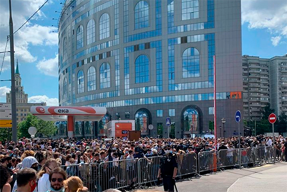 У входа в Мещанский суд сегодня собрались, по разным оценкам, от нескольких сотен до двух тысяч человек, в том числе журналисты, политические и общественные деятели и деятели культуры. Среди них был рэпер Oxxxymiron, который накануне призвал своих подписчиков в инстаграме прийти к зданию суда и выразить солидарность с обвиняемыми.
