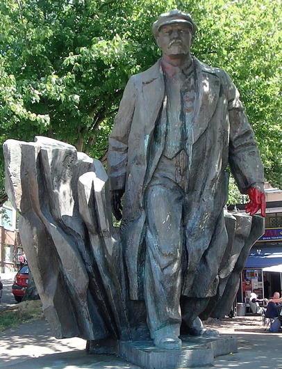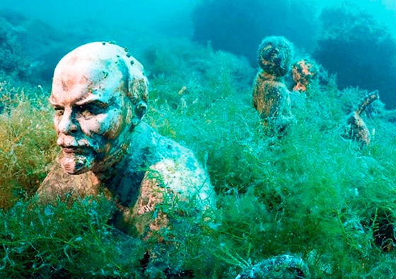 © Wikimedia Commons, the free media repository Памятник Ленину, перебравшийся в конце 80-х годов из Словакии в Сиэтл, штат Вашингтон. Рука, вымазанная красной краской, — результат мелкого вандализма со стороны местных жителей В Крыму на мысе Тарханкут можно наблюдать исключительно любопытный случай перемещения памятников советской эпохи — под воду [2].