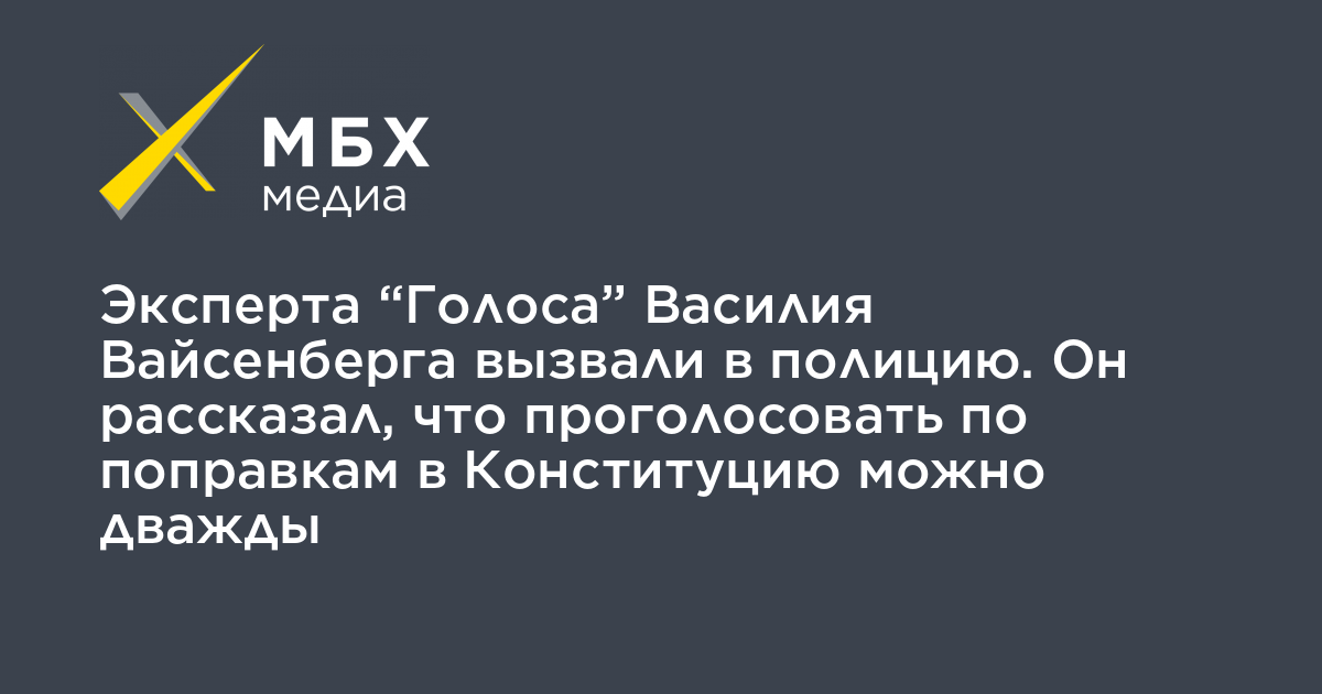 Эксперта движения «Голос» Василия Вайсенберга вызвали в полицию после того, как он рассказал, что можно дважды проголосовать по поправкам в Конституцию — на участке и удаленно. Об этом Вайсенберг рассказал «МБХ медиа».