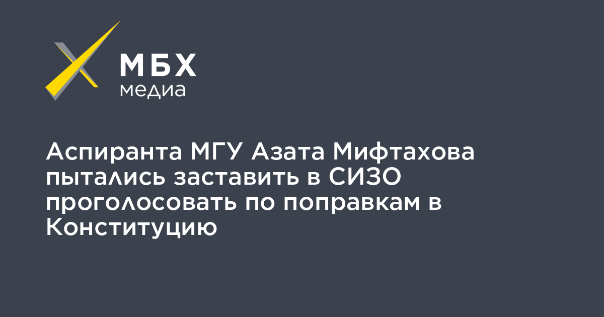 Аспиранта МГУ Азата Мифтахова пытались заставить в СИЗО проголосовать по поправкам в Конституцию