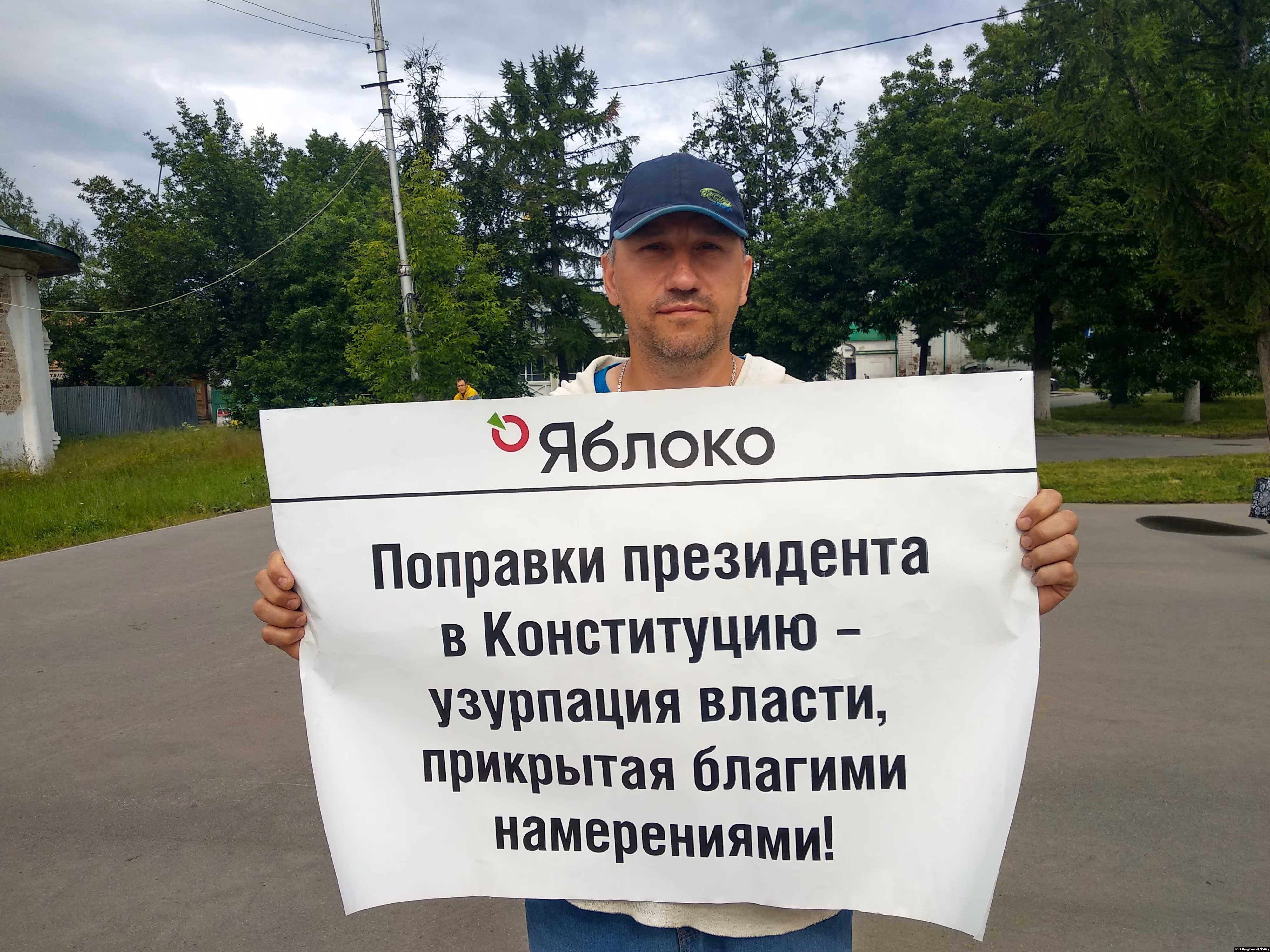 Член вологодского отделения партии "Яблоко" Роман Морозов 26 июня провел одиночный пикет возле "Старого рынка" в центре города. Около часа он простоял с плакатом "Поправки президента в Конституцию — узурпация власти, прикрытая благими намерениями", сообщил корреспондент Север.Реалии.