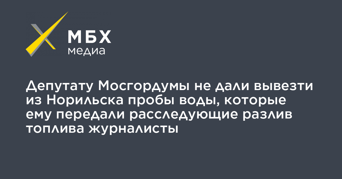 Депутату Мосгордумы не дали вывезти из Норильска пробы воды, которые ему передали расследующие разлив топлива журналисты