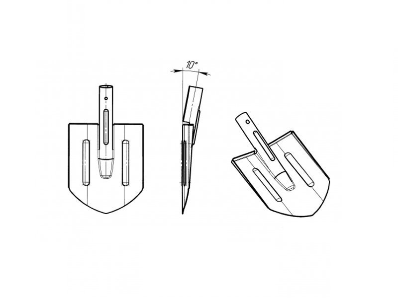 «Работает лопата следующим образом. При усилии рук на черенок и усилии ног на опорные элементы и благодаря уменьшенному до 10-12° углу наклона тулейки к полотну, имеющему заостренную режущую часть, характерную для копальных лопат, легко врезается в грунт, позволяя при этом поддеть его и удержать на лопате за счет боковых отбортовок и опорных элементов, а также вогнутости полотна и переместить на необходимое расстояние при небольших усилиях», — поясняют авторы.