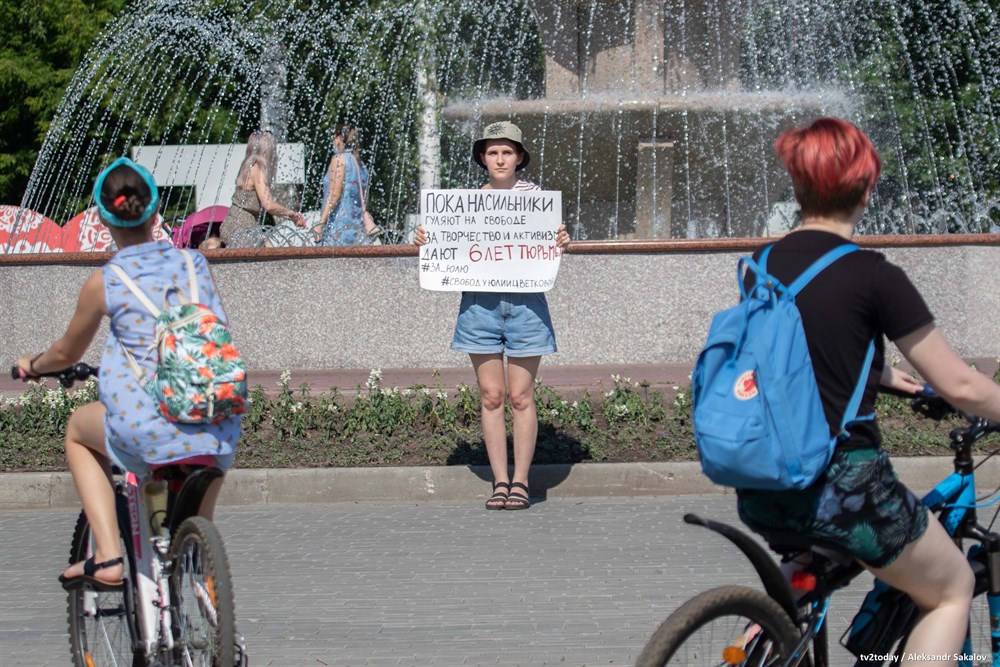 По информации организаторов одиночных пикетов, Юлию Цветкову обвиняют в распространении порнографии и гей-пропаганде за «безобидные бодипозитивные рисунки».