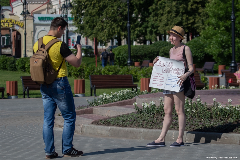 В Томске выстроилась пикетная очередь в поддержку хабаровской фемактивистки Юлии Цветковой