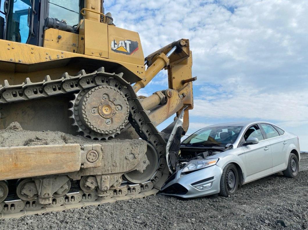 На место приехала прокуратура. Полицейскую машину, на которой добирались прокуроры, раздавил трактор «Норникеля», убирающий трубы.