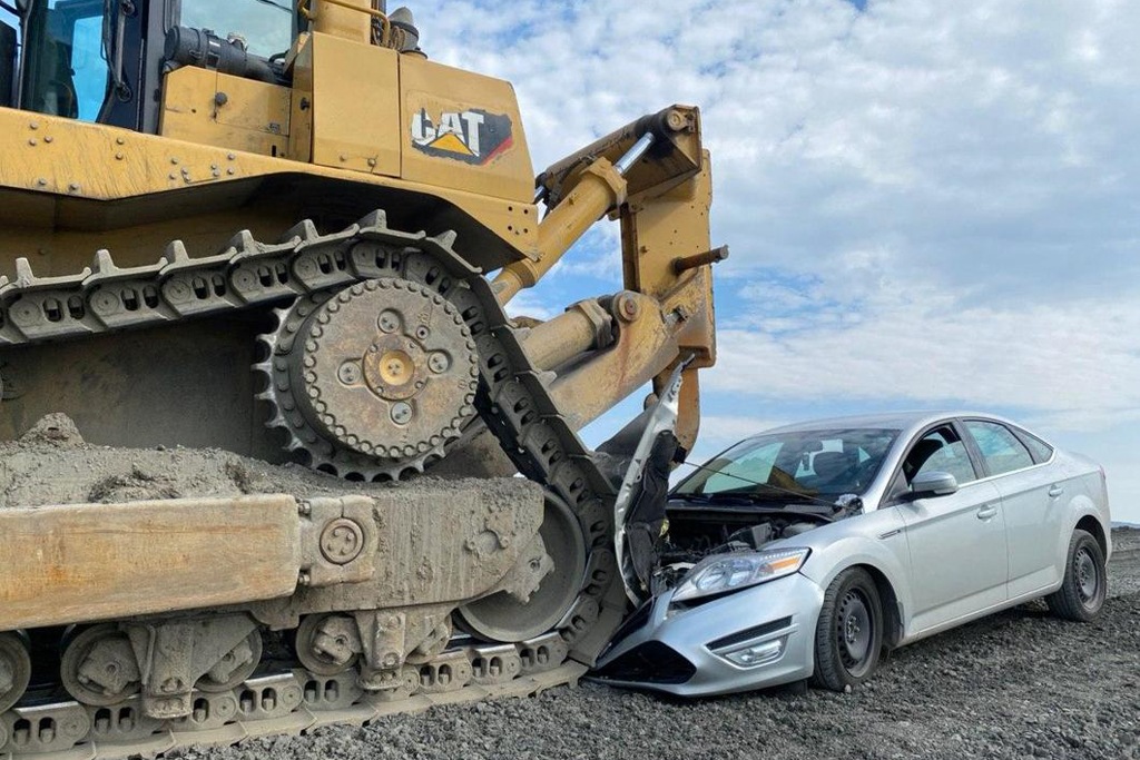 Бульдозер «Норникеля» раздавил машину прокуратуры. Фото