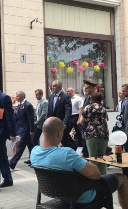 Без масок пришли на парад подконтрольные России глава Крыма Сергей Аксенов и спикер Владимир Константинов.