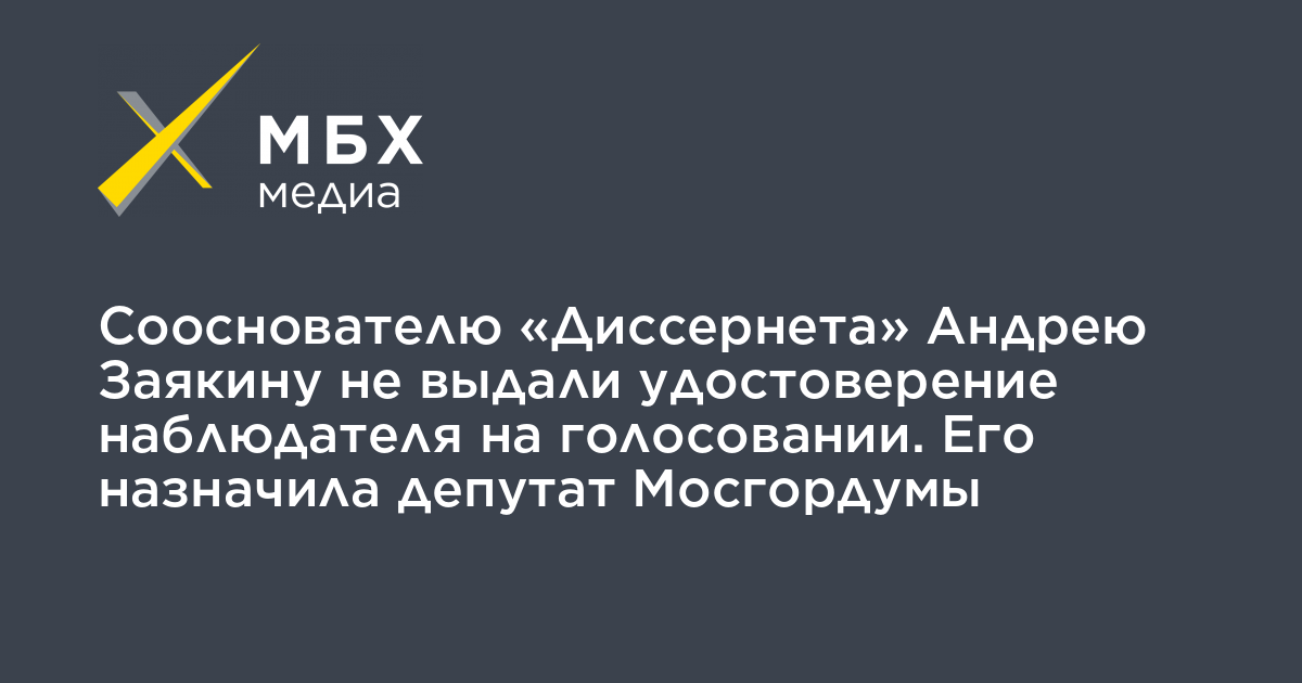 Сооснователю «Диссернета» Андрею Заякину не выдали удостоверение наблюдателя на голосовании. Его назначила депутат Мосгордумы