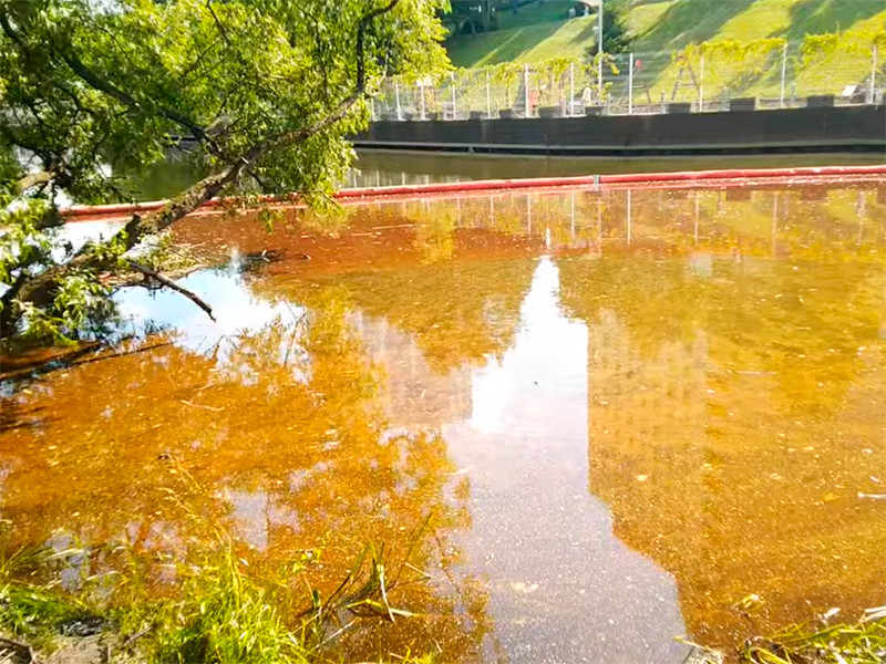 В Химках выброс нефтепродуктов в реку Грачевку pic.twitter.com/hEFvHKRA8s