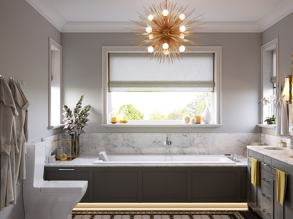 По словам Никиты Зуба, подчеркнуть свет в ванной можно множеством разных способов: «Это может быть минималистичная ванная, где окно со стеной отделаны плиткой, или махровая классика — с багетами, молдингом и прочей красотой. А еще благодаря естественному свету здесь можно поставить цветы: например, орхидеи любят такую влажную тропическую среду».