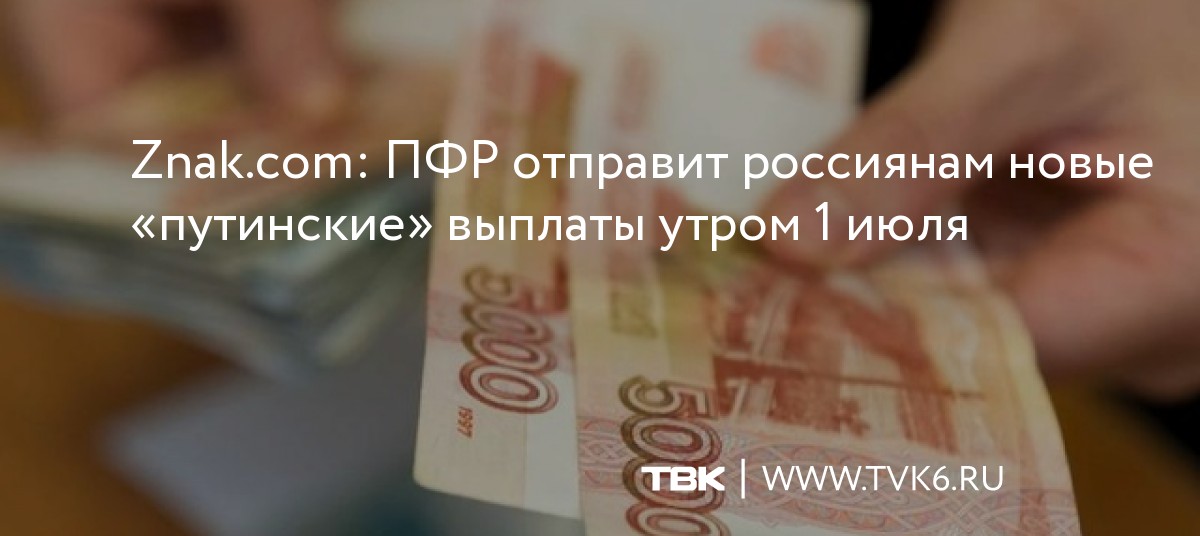 Znak.com: ПФР отправит россиянам новые «путинские» выплаты утром 1 июля