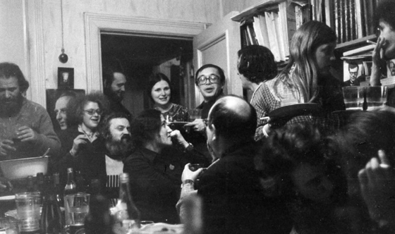 Ким Хадеев (сидит, третий слева) в московской диссидентской компании, в доме Юрия Айхенвальда. 1970-е Правомочно допустить, что продолжительное тюремное общение в 1952–1954 годах с Павлом Улитиным, Юрием Айхенвальдом, Александром Асарканом и другими диссидентами-интеллектуалами превратило молодого Кима Хадеева из воинствующего антикоммуниста в нонконформиста с интуициями непромокаемого для идеологии культурного космоса в Минске. И, конечно, сама возможность интенсивной независимой жизни в условиях тюремной психбольницы давала такие подсказки.