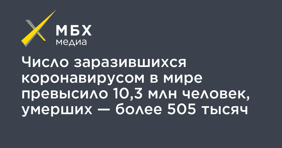 Число заразившихся коронавирусом в мире превысило 10,3 млн человек, умерших — более 505 тысяч