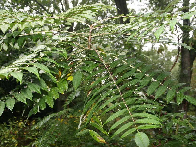 Сумах голый (Rhus glabra) — кустарник или дерево с перистыми листьями, широко распространенное от юга Канады до Аризоны, Флориды и северной Мексики. Молодые побеги сумаха индейцы использовали в пищу, а его плоды жевали, чтобы утолить жажду. Чай из листьев и плодов сумаха голого применяется в народной медицине.