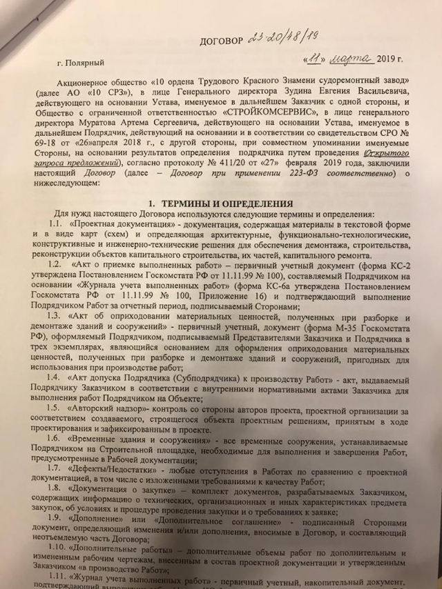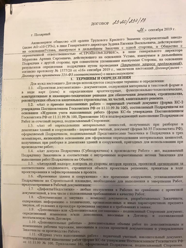 «В марте 2019 г. 10 СРЗ подписал договор с компанией "Стройкомсервис" на демонтаж старого забора за 28 млн. 500 тыс. руб. В сентябре 2019 — очередной договор уже на строительство нового забора. Сумма подрядного контракта 29 млн. 400 тыс. рублей. По итогу, старый забор, а точнее его остатки, на прежнем месте, а нового как не было, так и нет. И весь этот беспредел творится на заводе оборонно-промышленного комплекса в ЗАТО Александровск. О какой безопасности может идти речь, если элементарная защита стратегического объекта — забор, существует только на бумаге, а деньги на его строительство оказались украдены генеральным директором 10 СРЗ Евгением Зудиным, действующим в сговоре с Артемом Муратовым, директором ООО "Стройкомсервис"», — удивляется автор блога.