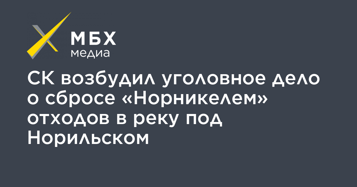 Следственный комитет возбудил уголовное дело после сброса «Норникелем» производственных отходов в реку Хараелах под Норильском, сообщает «Новая газета».
